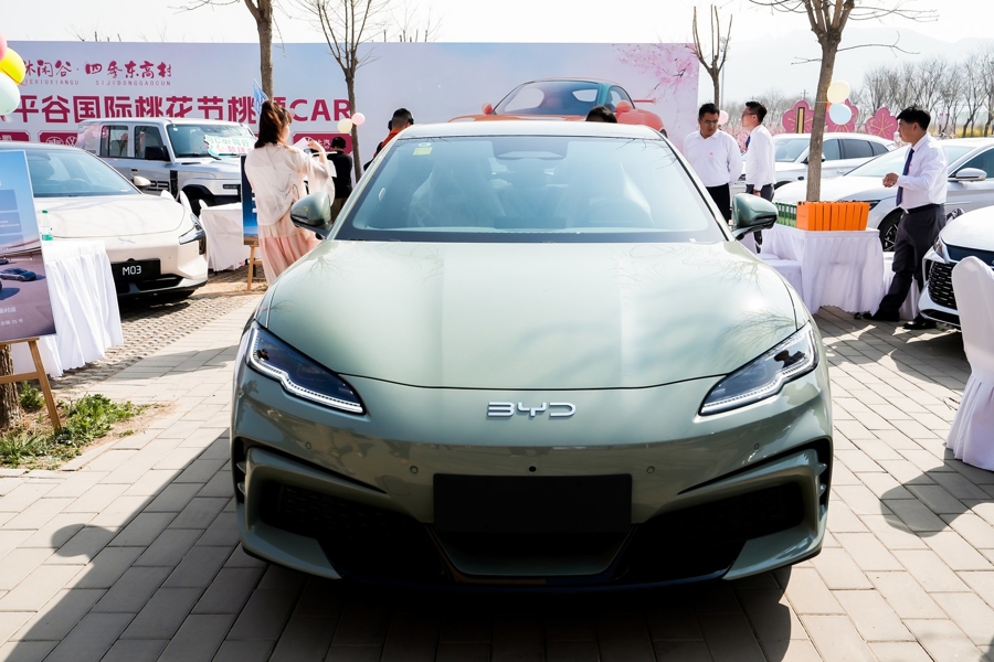 桃花海中,“桃源Car”车展令人耳目一新,20余款新能源车型亮相。在比亚迪王朝+海洋系列、小鹏智能轿跑、上汽大众ID.家族、别克微蓝等热门车型展台,不少人预约前来试驾、选购。